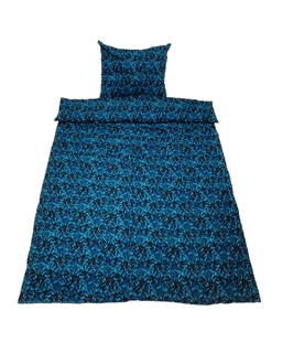 Dynebetræk til enkeltseng 140×200 cm med pudebetræk. Dansk Pluche Blå design, kraftigt tryk i 100% blød bomuld. Plysagtigt look – ikke ægte plys.