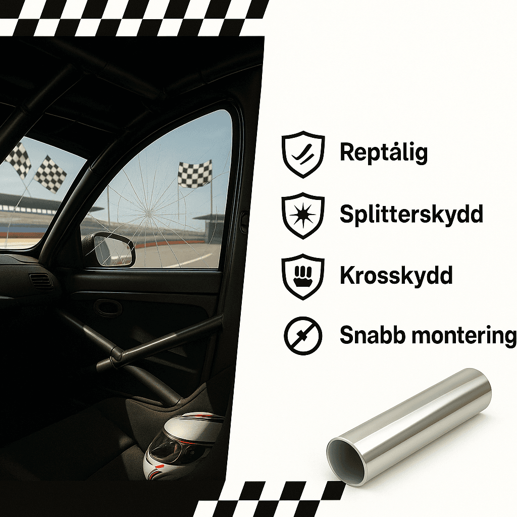 Praktisk rulle med splintfilm som fanger glassplinter, hvis der sker en ulykke.