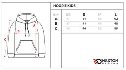 A gray hoodie with pockets from Maxton Design. The sweater has a black/red print on the chest and a small logo down at the side. Available in size XS-L.