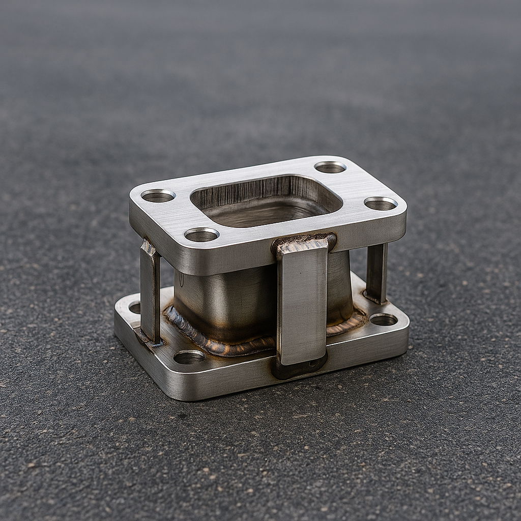 Turboadapteri T3:sta (44×87 mm) T4:ään (70×82 mm). Rakennekorkeus 57 mm helpottaa turbon päivittämistä ilman pakosarjan muokkausta. Sopii erinomaisesti räätälöityihin rakenteisiin.