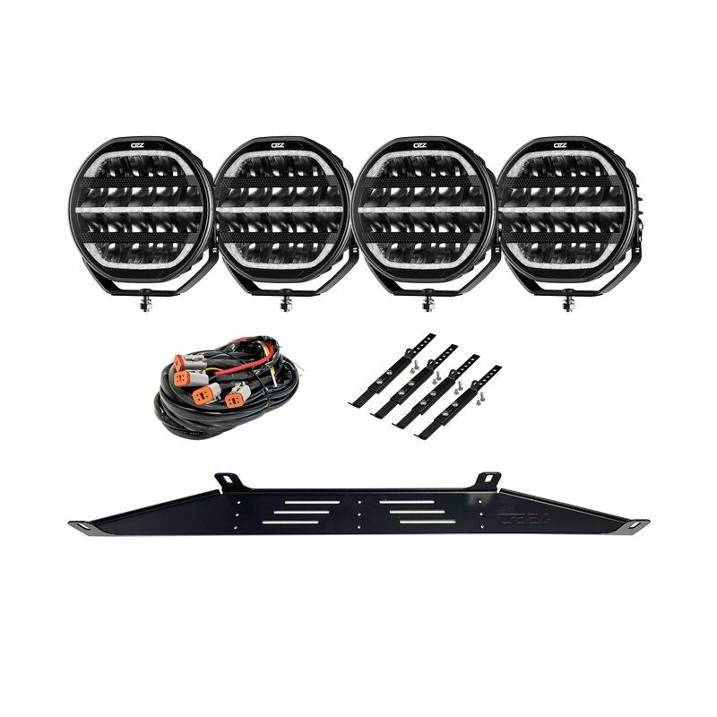 4-pakning med OZZ Extra Light P9 svart sammen med holder, toppbrakett og relésett. Alt du trenger for å montere!
