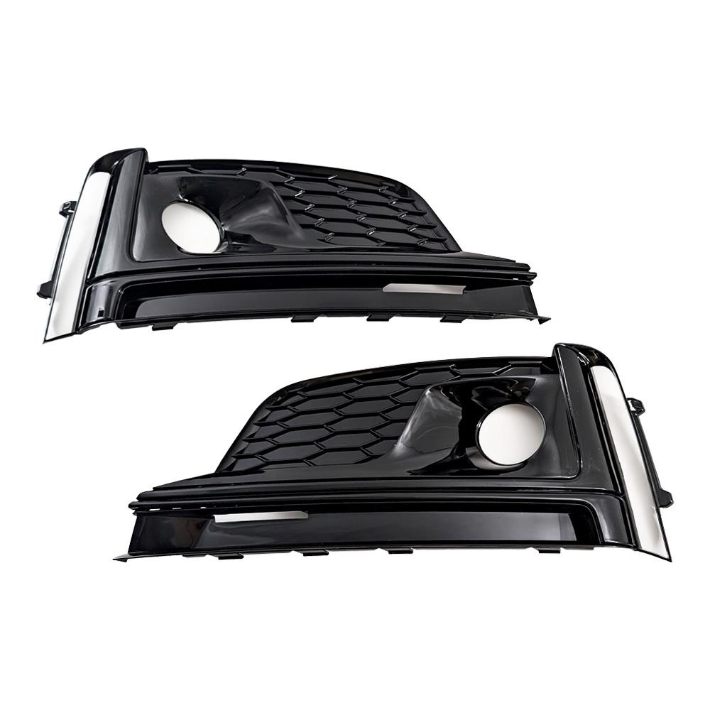 Tåkelysgrill Audi A5 2015-2018 Honeycomb-modell, passer både til biler med og uten tåkelys. For biler uten tåkelys monteres «dummy-lys» i holderen.