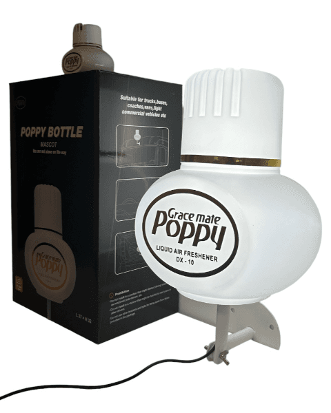 Offisiell Poppy-maskot med innebygd belysning og monteringsbrakett. Perfekt som dekorasjon for lastebiler, busser, varebiler eller hobbyrom. Størrelse 27 × 32 cm.