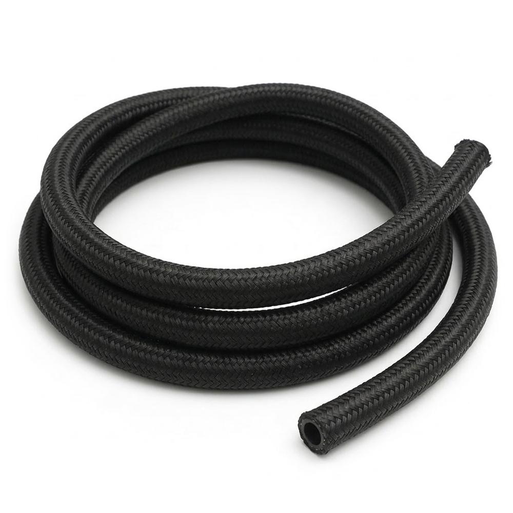Vår AN8 nylonflettet PTFE-slange kombinerer ekstrem temperatur- og kjemikaliebestandighet med lav vekt og enkel installasjon. Den glatte PTFE-innerkjernen gir lav friksjon og høy kompatibilitet med E85, bensin, diesel og olje. Stålforsterkningen og den svarte nylonflettet beskytter mot slitasje og gjør slangen fleksibel i trange rom.