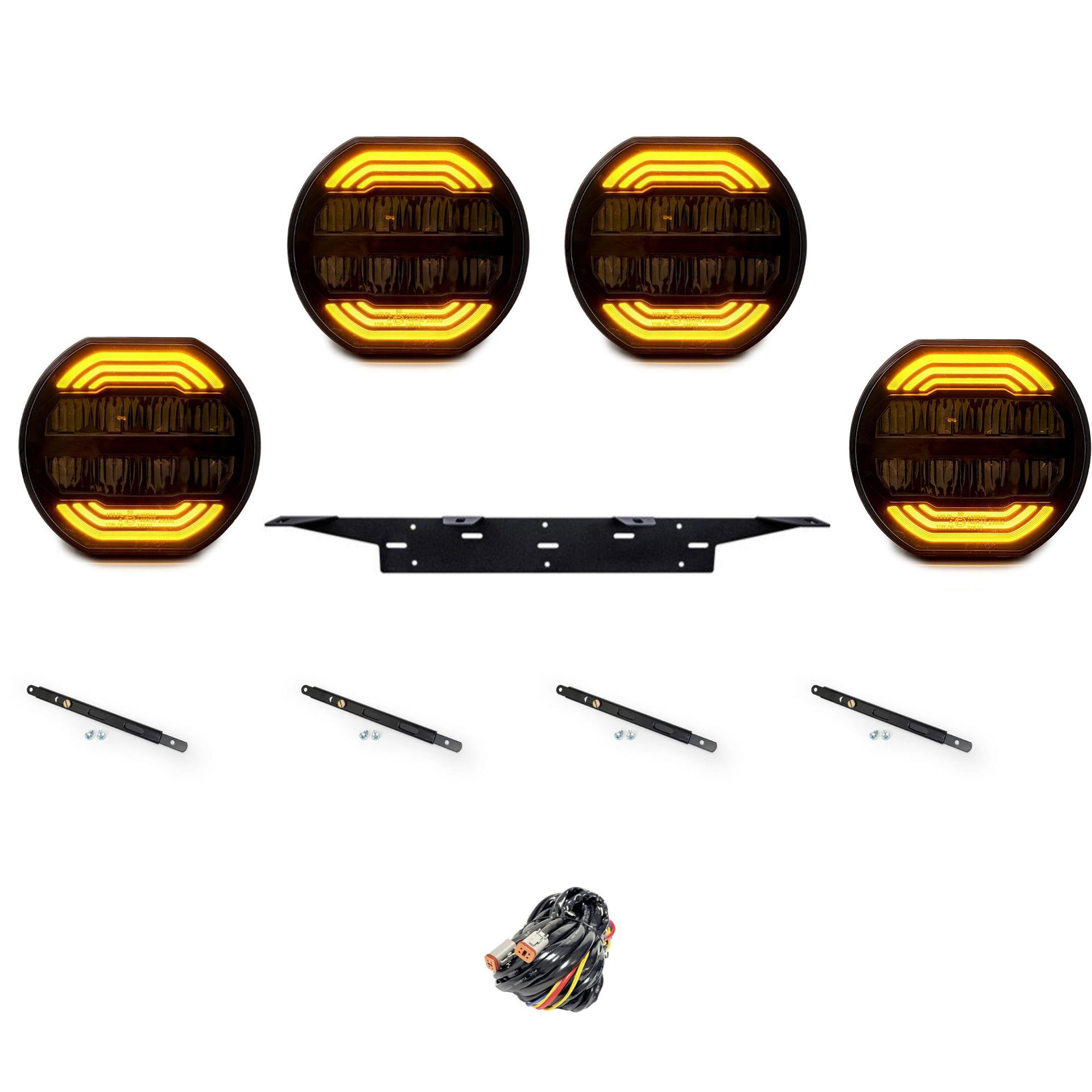 4-Pack med SC P9 Premium Extraljus tillsammans med hållare, toppstag och reläsats. Allt du behöver för att montera!