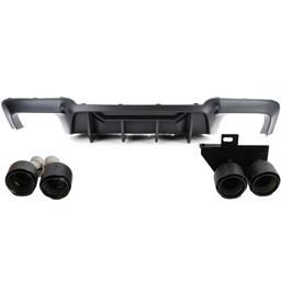 Avgasrören levereras med svart, äkta kolfiberbeläggning för en exklusiv look och lång hållbarhet. Diffusorn har dubbla urtag på båda sidor, perfekt anpassad för fyrdubbla ändrör och en harmonisk, symmetrisk bakdel.