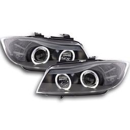 Snygga strålkastare med LED Angeleyes ringar i svart utförande till BMW E90 & E91 05-08