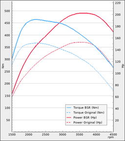 Med steg 1 trim blir bilens nya effekt och vridmoment ca. 202Hp / 458Nm.
