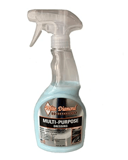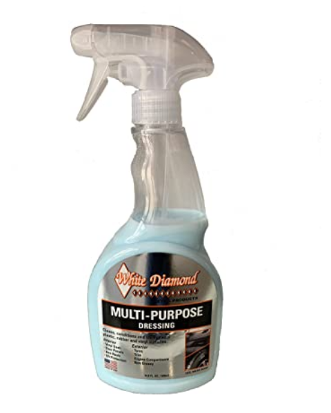 White Diamond Multi Purpose Dressing är en kladdfri, ej färgande spray som rengör, fräschar upp och skyddar vinyl, plast, gummi och läder. Ger naturlig finish och UV-skydd mot blekning.