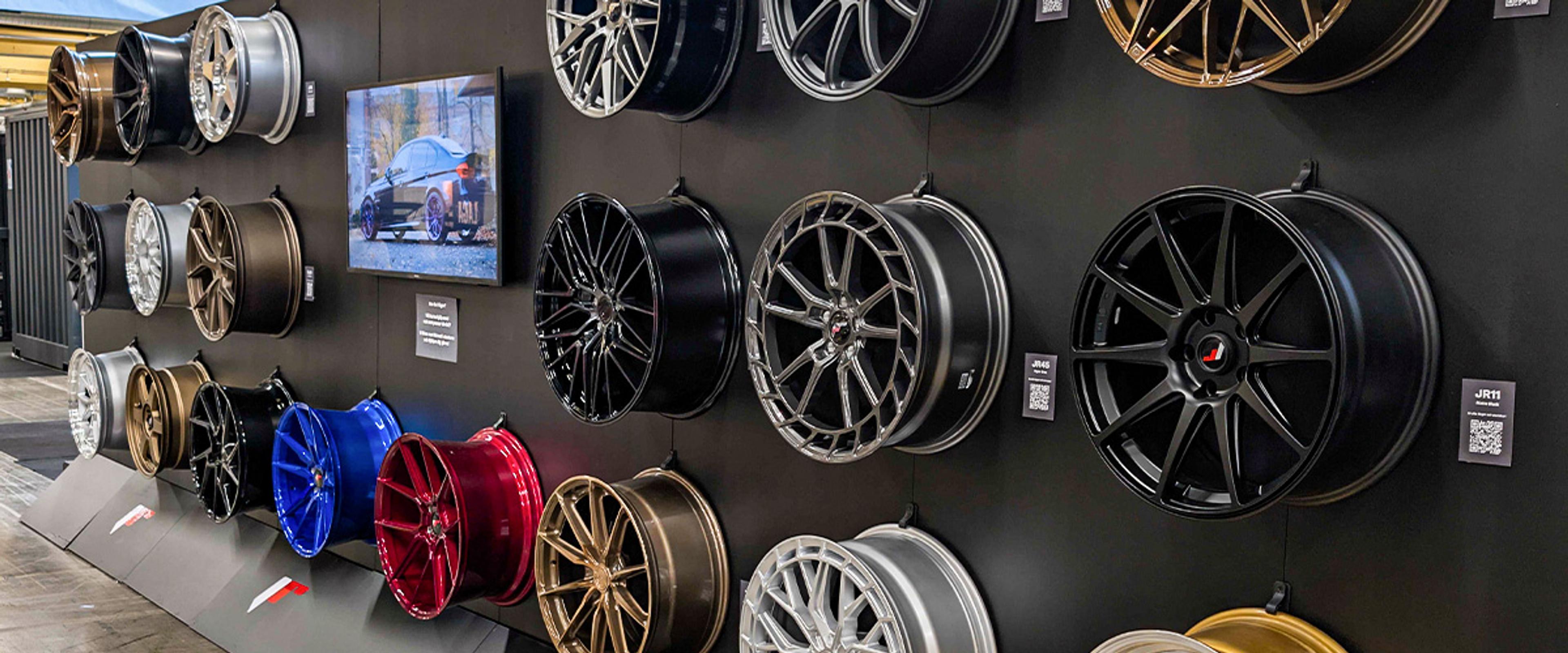 Vår fälgvägg med populära och nya modeller från Japan Racing var en riktig höjdare på Elmia! Här fanns allt från klassiska JR11 och JR6 till nyheter som JR48 och JR 45 med fräscha finishar och grym design på fälgar.