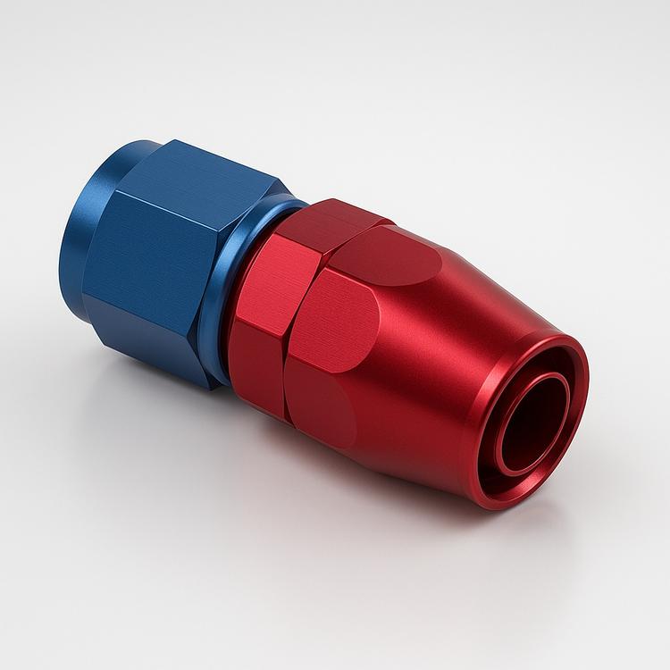 AN10 AN-koppling 90° – full flow – E85/bensin/olja (svart)