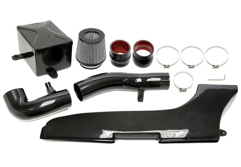 Den lätta konstruktionen och den stilrena designen i kolfiber-look lyfter helhetsintrycket i motorutrymmet och matchar bilens sportiga karaktär. Levereras som ett komplett insug som är anpassat för respektive modell, vilket gör monteringen smidigare för erfarna hemmamekare eller verkstad.
