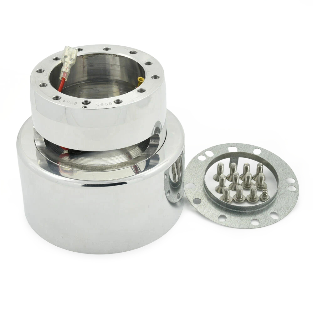Rattnav i CNC-bearbetad 6061 billet-aluminium för GM-fordon utrustade med teleskopisk rattstång. Möjliggör montering av rattar med standard 6-bultsmönster.